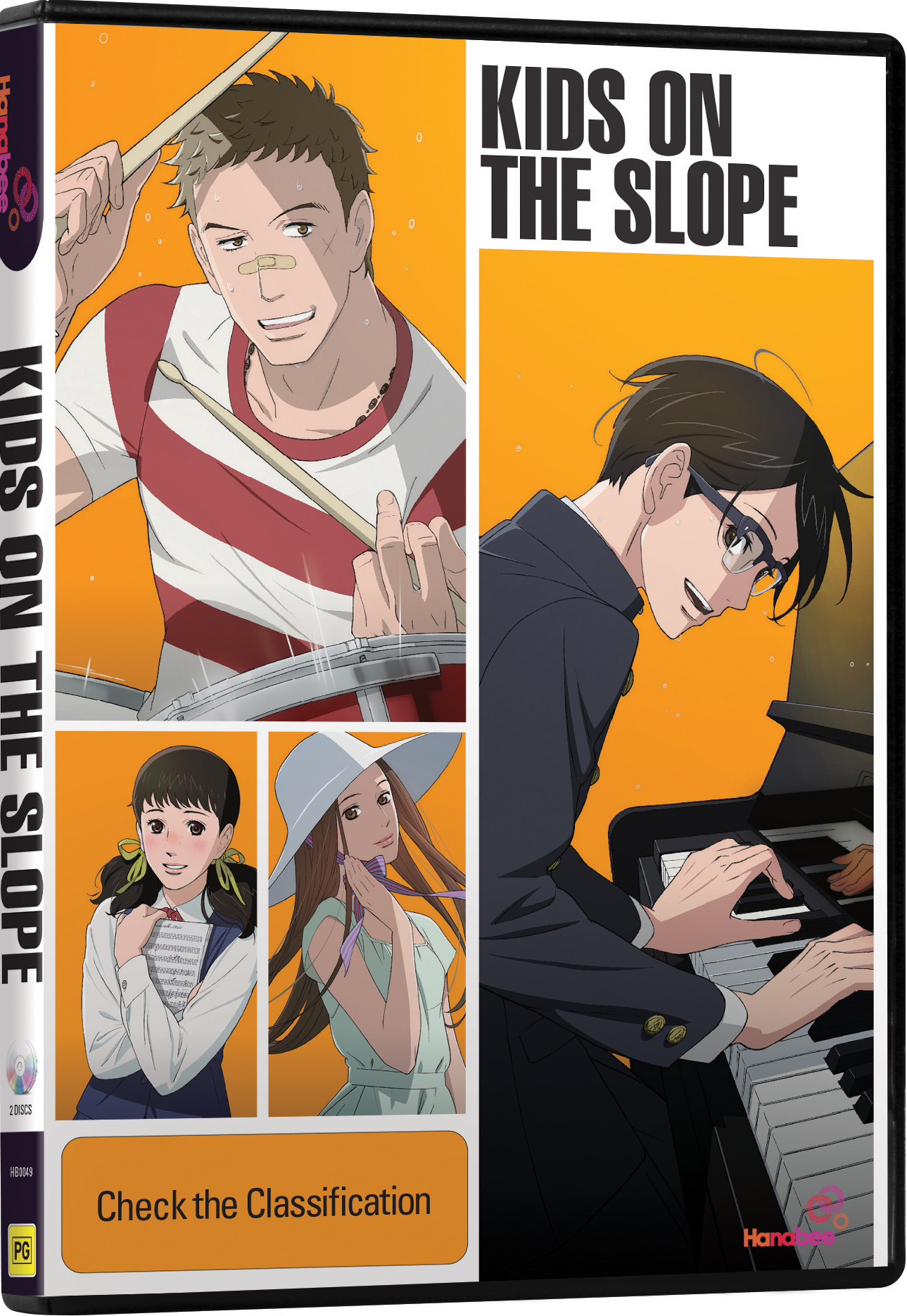 Kids on the Slope is based on Yuki Kodama's coming-of-age manga Sakamichi no Apollon (坂道のアポロン). The anime reunites Cowboy Bebop's administrator Shinichiro Watanabe (Macross Plus, The Animatrix's "Kid's Story," Samurai Champloo) and artisan Yoko Kanno (Macross Plus/Frontier, Escaflowne, Ghost in the Shell: Stand Alone Complex). Nobuteru Yuki (Record of Lodoss War, Escaflowne, Space Battleship Yamato 2199) advised the characters alongside arch action administrator Yoshimitsu Yamashita (Hyouge Mono, Phantom ~Requiem for the Phantom~). The anime was produced by MAPPA and Tezuka Productions for Fuji TV's bounce Noitamina block in 2012 and ran for 12 episodes. The Japanese dub has Ryohei Kimura (Kaito Yashio - Robotics;Notes) delivery Kaoru Nishimi and Yoshimasa Hosoya (Nezumi in No. 6) as Sentarō Kawabuchi.